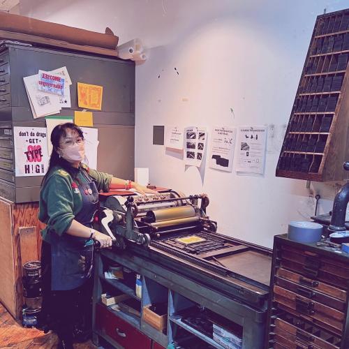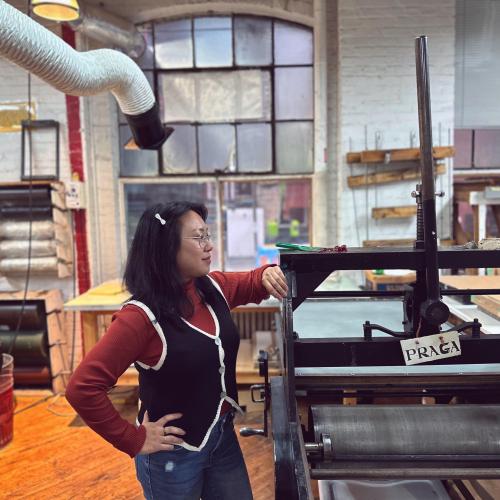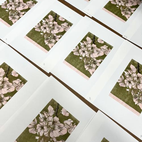 Born and raised in Vietnam, Helen Tran has always been naturally drawn towards creating art as a young girl. Her first watercolour booklet of Disney characters aspired her to paint. She soon later found her passion for the uniqueness of Printmaking. Tran pursue her education in Visual and Creative Arts at Sheridan College, Oakville, Canada and holds a BFA in Printmaking & Publications with a second focus in Photography. She has exhibited her work at the Art Gallery of Mississauga, The Japanese Paper Place, TOAF61 and Visual Arts Mississauga (VAM). Tran currently is working as an archivist assistant and artist member at the Open Studio Contemporary Printmaking Centre in Toronto. Tran is well-versed in many printing techniques; including lithography, relief, silkscreen, and intaglio. Nevertheless, she enjoys working with the versatility of lithography and bookmaking in her spare time. When she is not making prints, she enjoys adventuring outdoors with her 35mm analog film camera, watercolour painting, tapestry and creative writing. She is currently working on several linocut series of botanical imagery, along with cyanotype processes at her home studio.