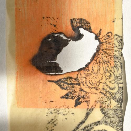I would say my work appeals to a sense of ephemerality, painterly, and centralized on ancestral culture. I am a bit of a washi enthusiastic and like working with (chine-collé) layering papers.